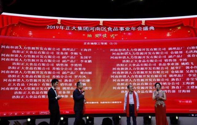 2019年1月21日,“龍頭騰起攬全月,鴻鵠展翅傲中原”——正大集團河南區(qū)食品事業(yè)2019新春年會在洛陽東華大酒樓盛大召開。正大集團農(nóng)牧食品企業(yè)(中國)副董事長王鴻章、正大集團河南區(qū)食品事業(yè)***總裁王學斌、正大集團河南區(qū)產(chǎn)業(yè)化總裁宋小兵及河南區(qū)食品事業(yè)各公司部門主管、員工代表300余人齊聚一堂,共享盛典。年會特邀河南東方正大有限公司洛陽飼料廠董事長茹懷智、中方副總經(jīng)理黃天發(fā)及河南和諧人力資源開發(fā)有限公司董事、總經(jīng)理王縣委、副總經(jīng)理張麗云參加。