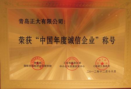 在商務(wù)部國際貿(mào)易經(jīng)濟合作研究院、工業(yè)和信息化部中小企業(yè)發(fā)展促進(jìn)中心、《經(jīng)濟》雜志社聯(lián)合組織的2012年“中國年度誠信企業(yè)”評選活動中,青島正大有限公司榮獲“中國年度誠信企業(yè)”殊榮。